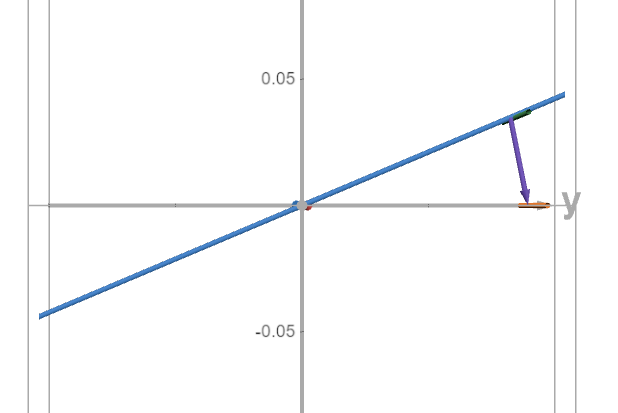 In the interactive version of the above picture (which corresponds to exactly 40 mean solar days after the Northern Fall equinox), if we rotate to look edgewise on the blue circle and on the plane spanned by $#\hat{A}#$ and $#\hat{S}#$ (so that our views of $#\hat{A}#$ and $#\hat{S}#$ are directly aligned), then we see that P and the vector $#\hat{D}#$ are not in the plane spanned by $#\hat{A}#$ and $#\hat{S}#$