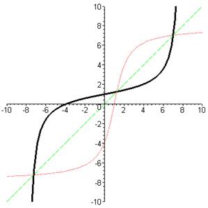 Note that the y-intercept of the graph of is the same as the x-intercept for f, and vice-versa. Also, where the graph of f crosses the line , the graph of does also.